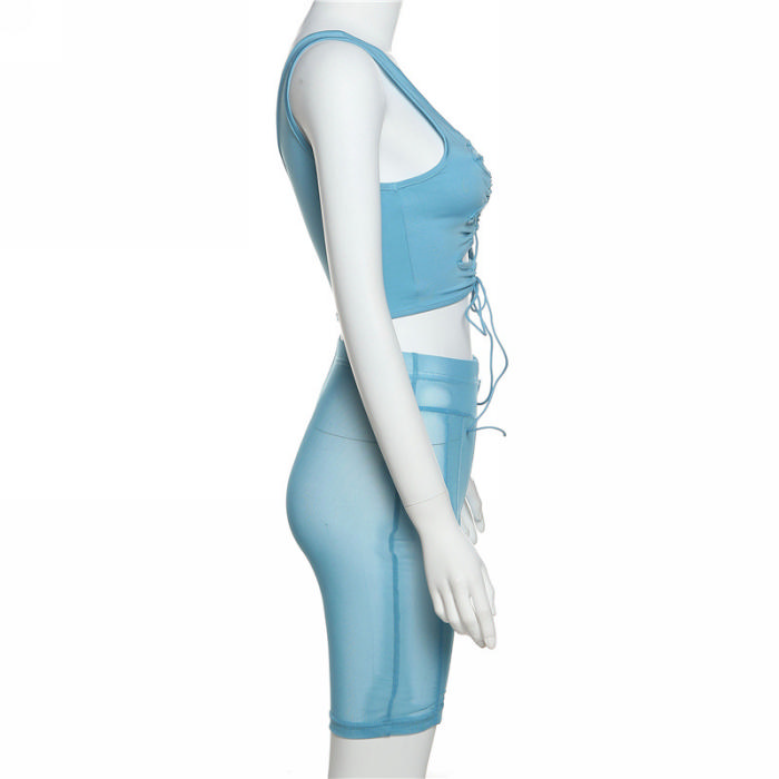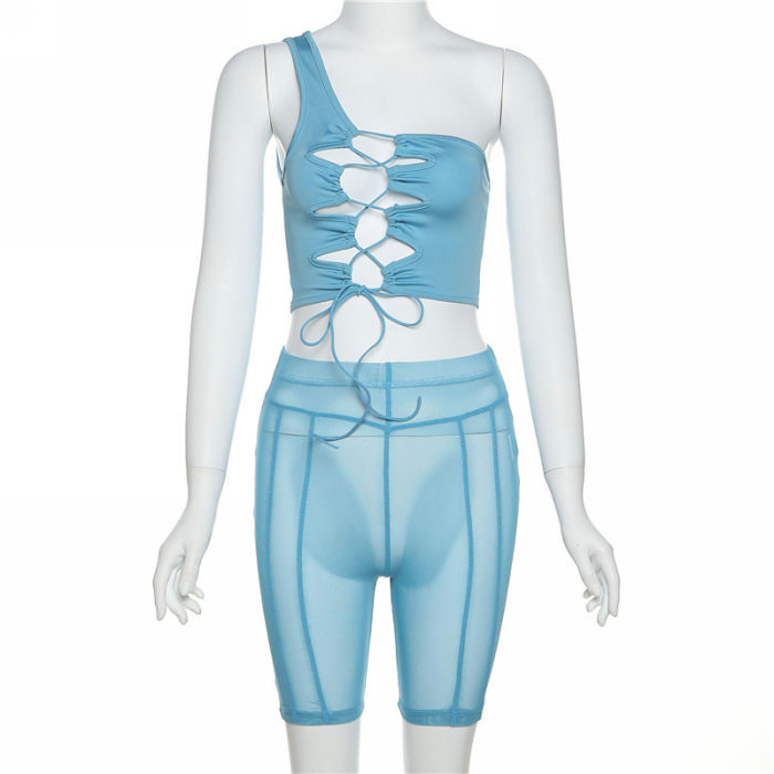 (Real Image)2022 Styles Women Sexy INS Styles Lace Up Short Two Piece SuitSKU: #CF49651-4