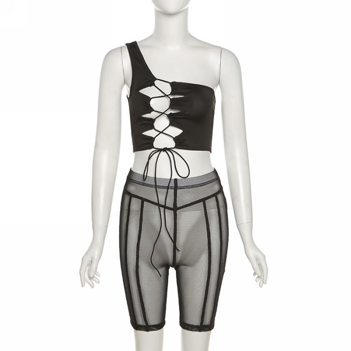 (Real Image)2022 Styles Women Sexy INS Styles Lace Up Short Two Piece SuitSKU: #CF49651-3
