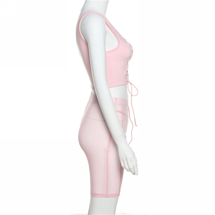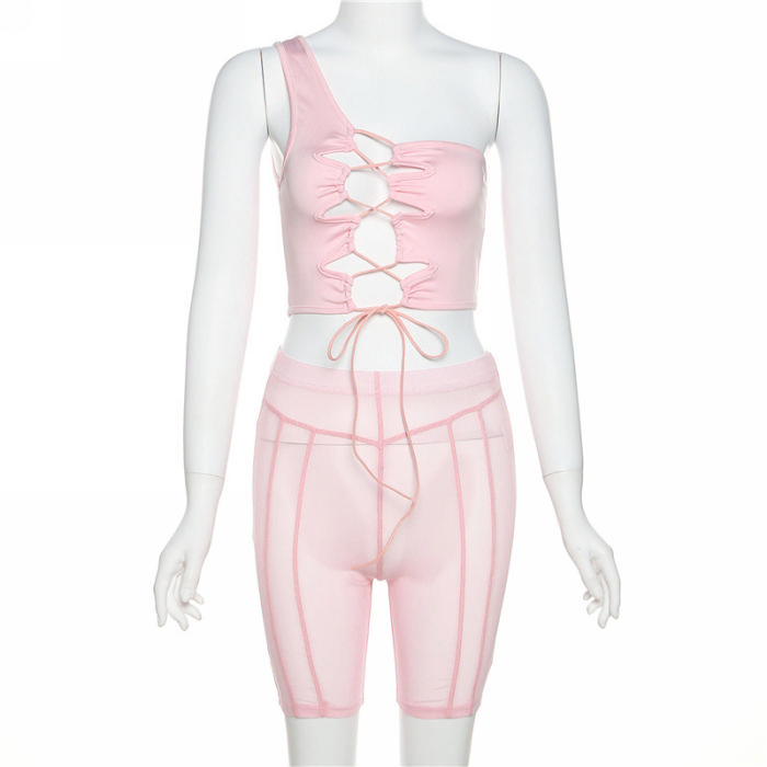 (Real Image)2022 Styles Women Sexy INS Styles Lace Up Short Two Piece SuitSKU: #CF49651-2