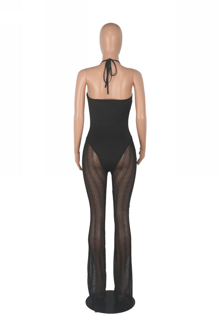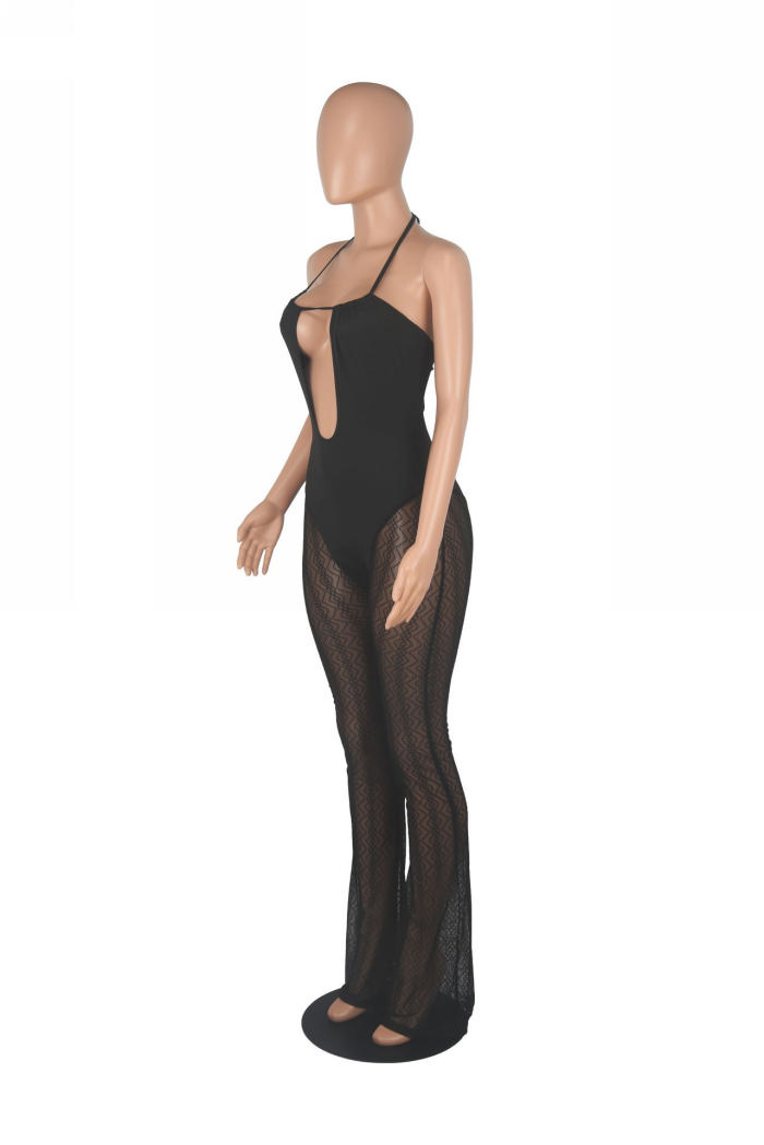 (Real Image)2022 Styles Women Sexy INS Styles Mesh Deep V Neck JumpsuitSKU: #XF02162-1
