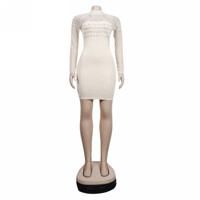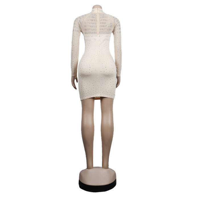 (Real Image)2022 Styles Women Sexy INS Styles Mesh Sequin Long Sleeve Mini DressSKU: #XF27207-2