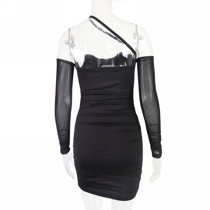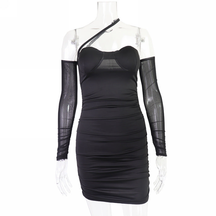 (Real Image)2022 Styles Women Sexy INS Styles Mesh Tube Cold Shoulder Mini DressSKU: #CF67031-1