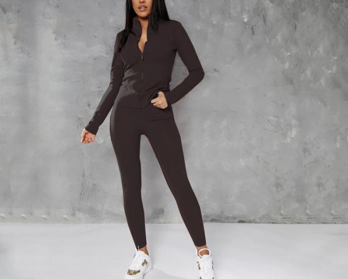 (Real Image)2022 Styles Women Sexy INS Styles Pink Front Zipper Jacket+Long Pants Two Piece SuitSKU: #CF67055-4