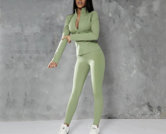 (Real Image)2022 Styles Women Sexy INS Styles Pink Front Zipper Jacket+Long Pants Two Piece SuitSKU: #CF67055-3