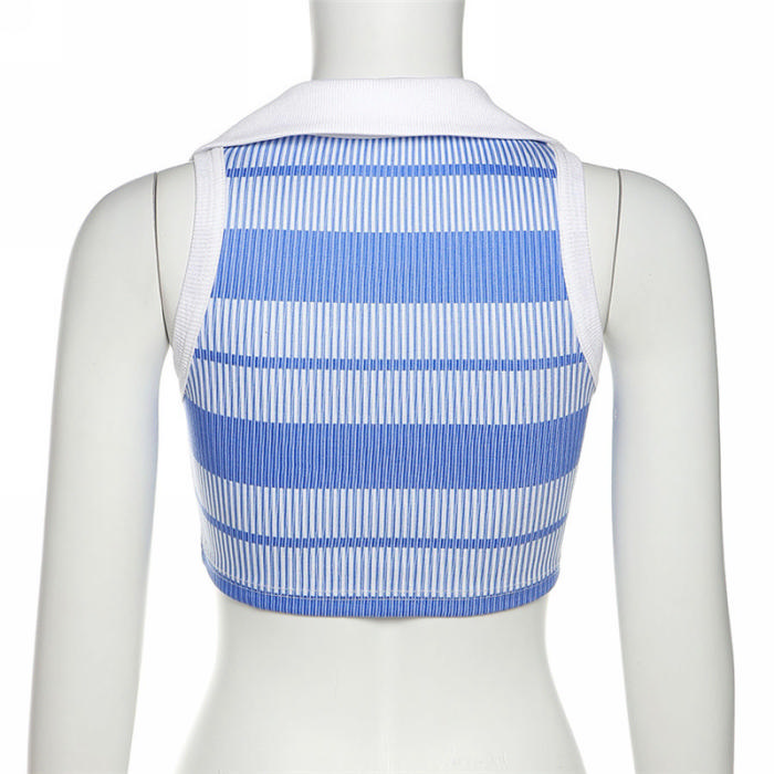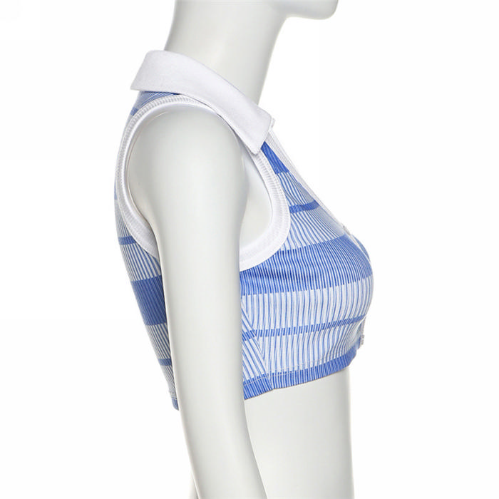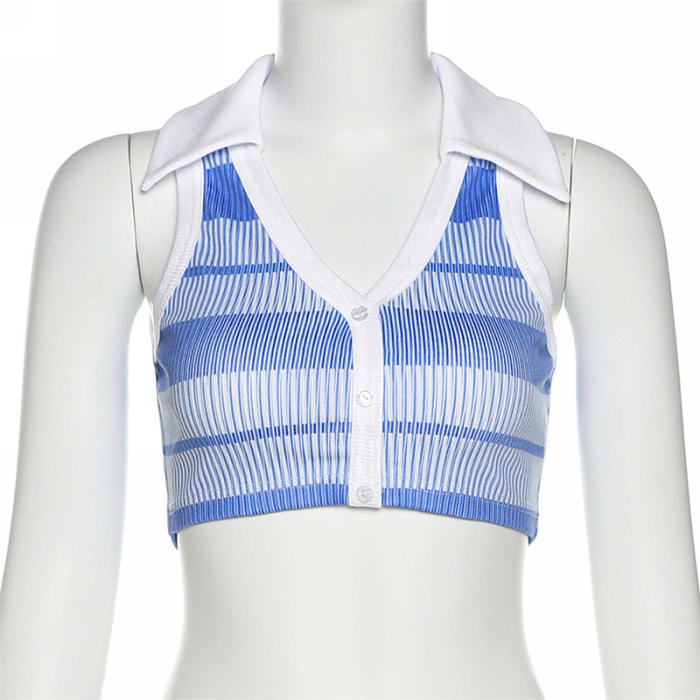 (Real Image)2022 Styles Women Sexy INS Styles Print Blue Front Button Tank TopsSKU: #CF48651-1