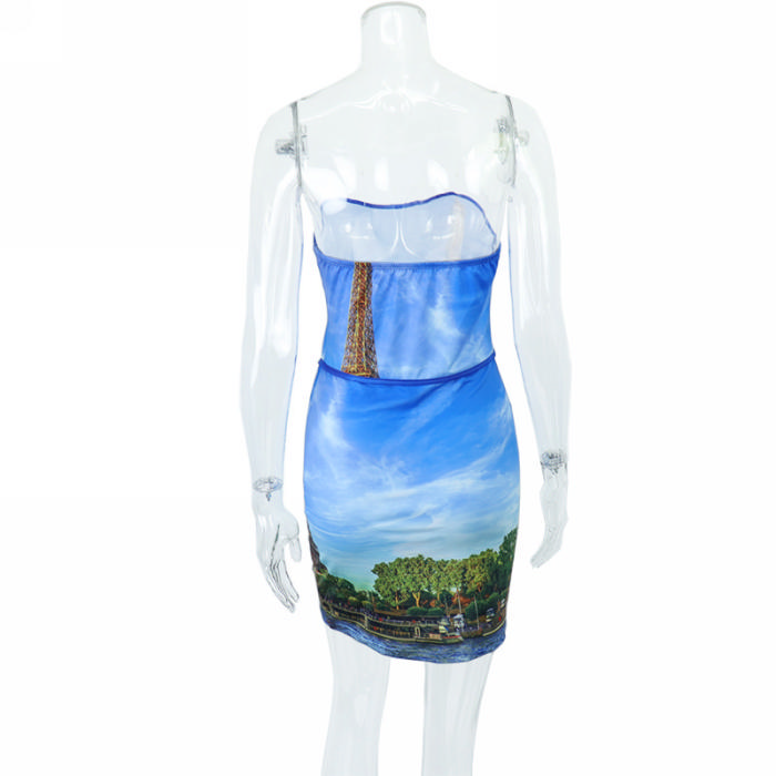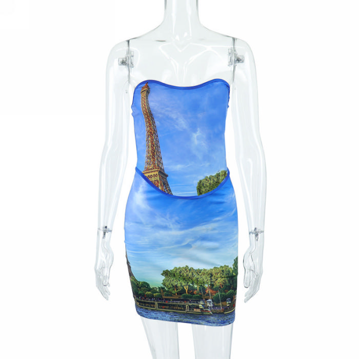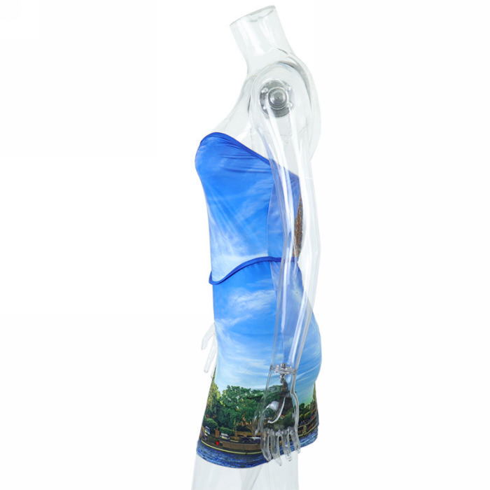 (Real Image)2022 Styles Women Sexy INS Styles Print Blue Tube Mini DressSKU: #CF67014-1