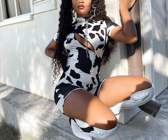 (Real Image)2022 Styles Women Sexy INS Styles Print Cut Out Romper JumpsuitSKU: #CF67019-1