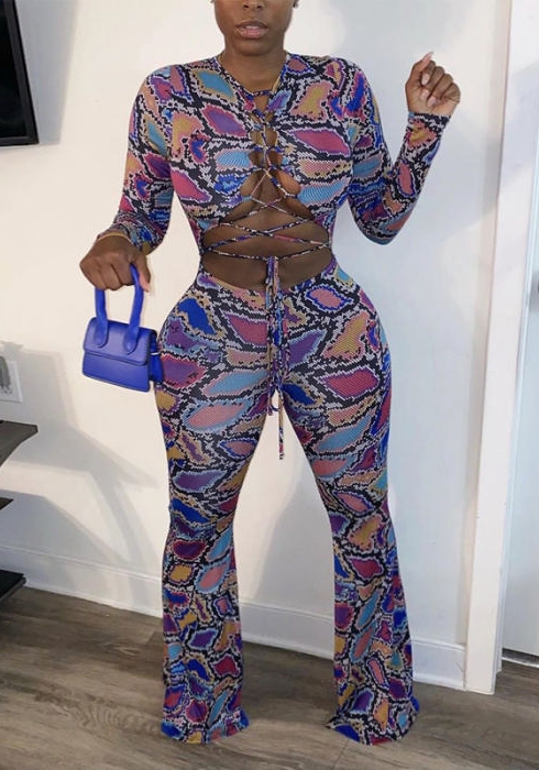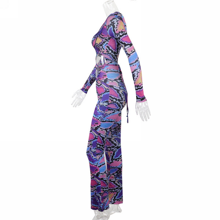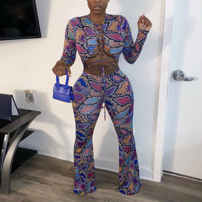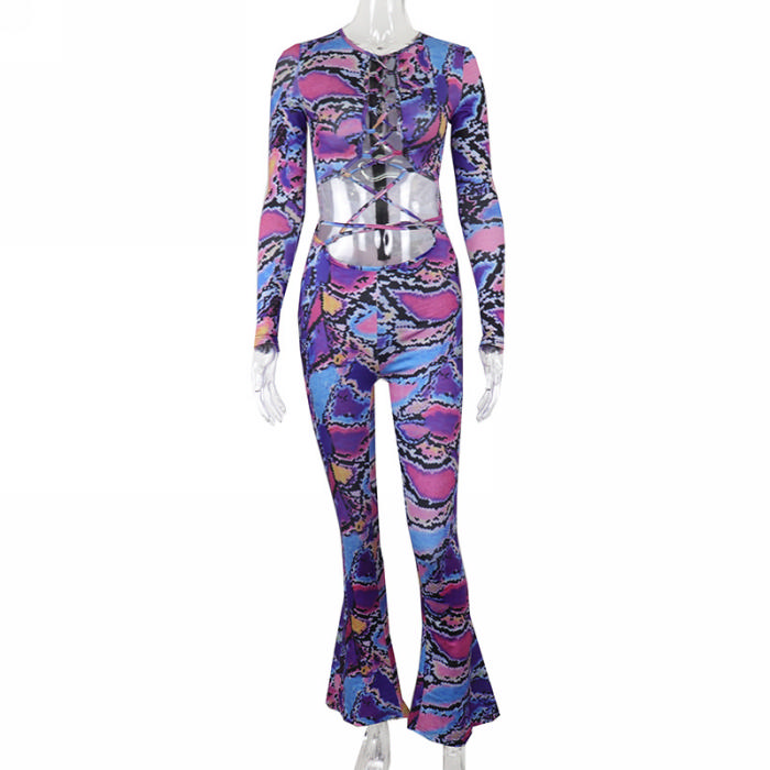 (Real Image)2022 Styles Women Sexy INS Styles Print Front Lace Up JumpsuitSKU: #CF67005-1
