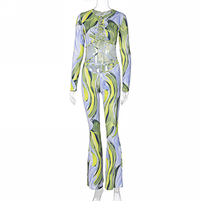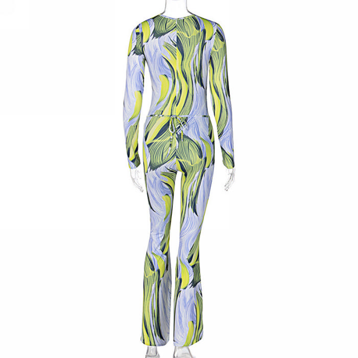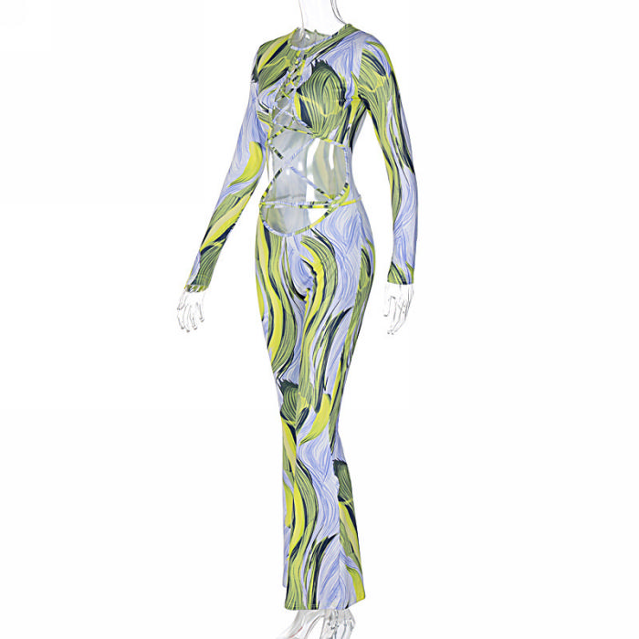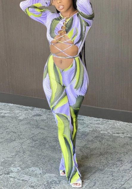 (Real Image)2022 Styles Women Sexy INS Styles Print Front Lace Up JumpsuitSKU: #CF67005-2