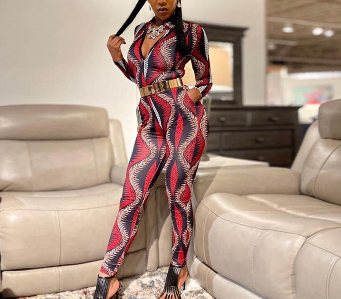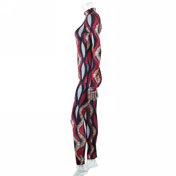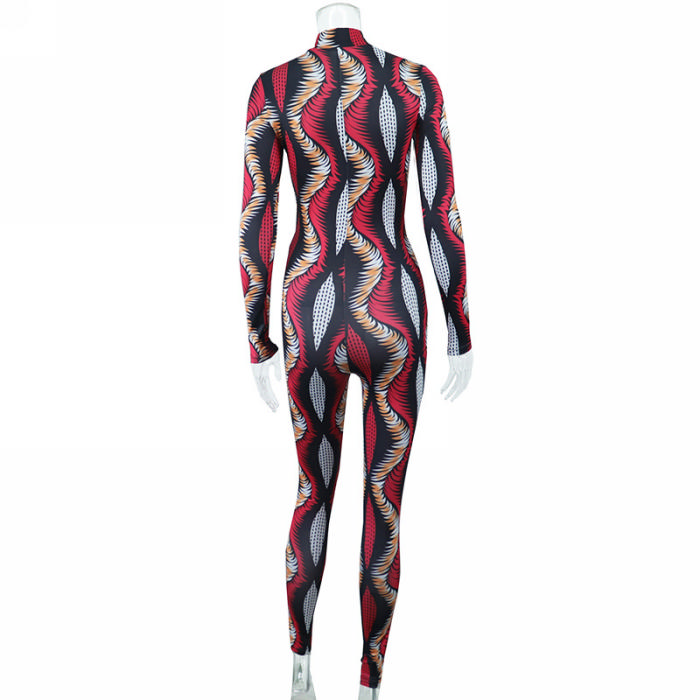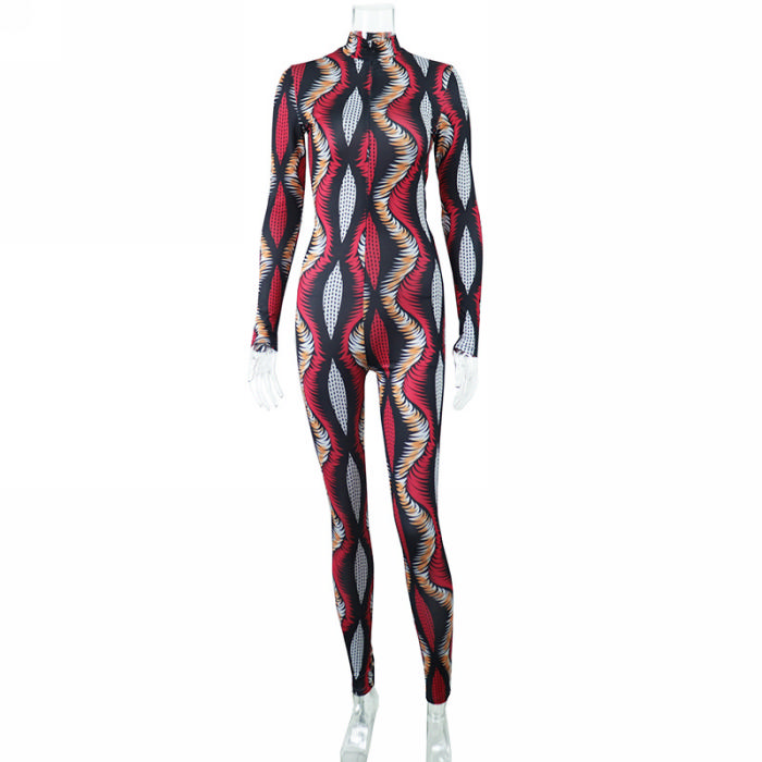 (Real Image)2022 Styles Women Sexy INS Styles Print Front Zipper JumpsuitSKU: #CF67009-1