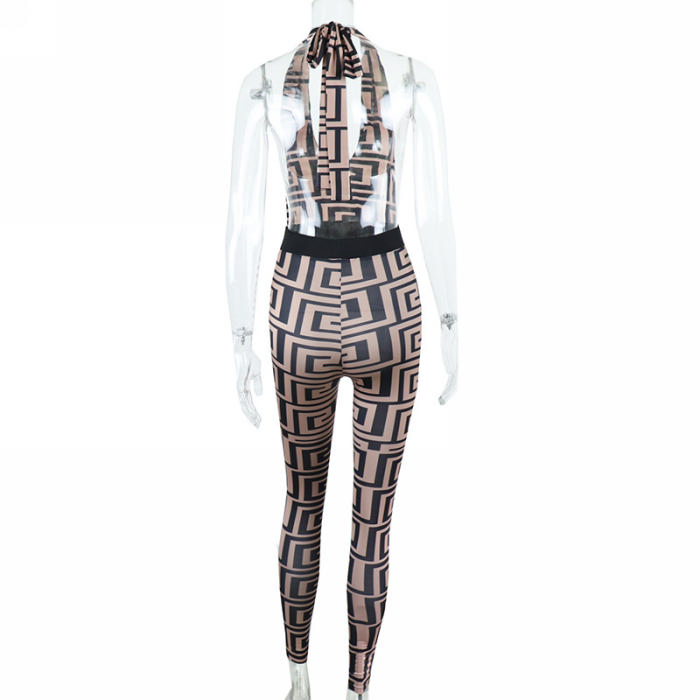 (Real Image)2022 Styles Women Sexy INS Styles Print Halter Backless JumpsuitSKU: #CF67056-1