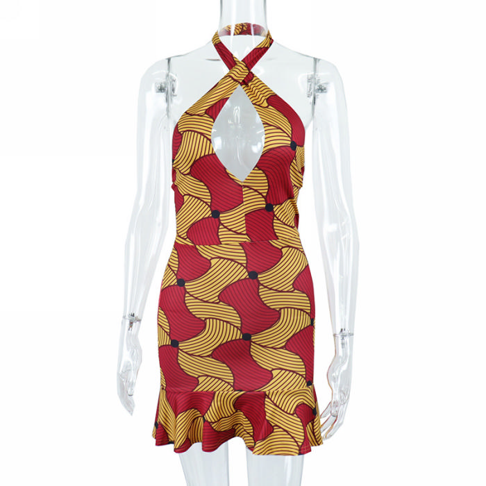(Real Image)2022 Styles Women Sexy INS Styles Print Halter Club DressSKU: #CF67069-1