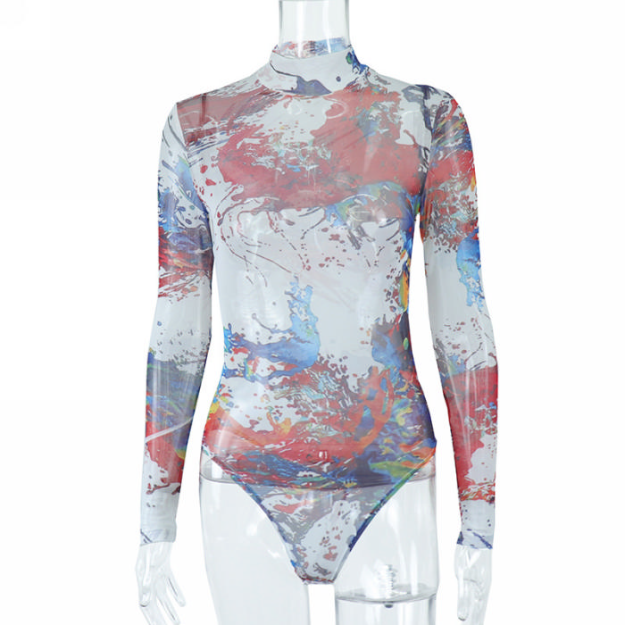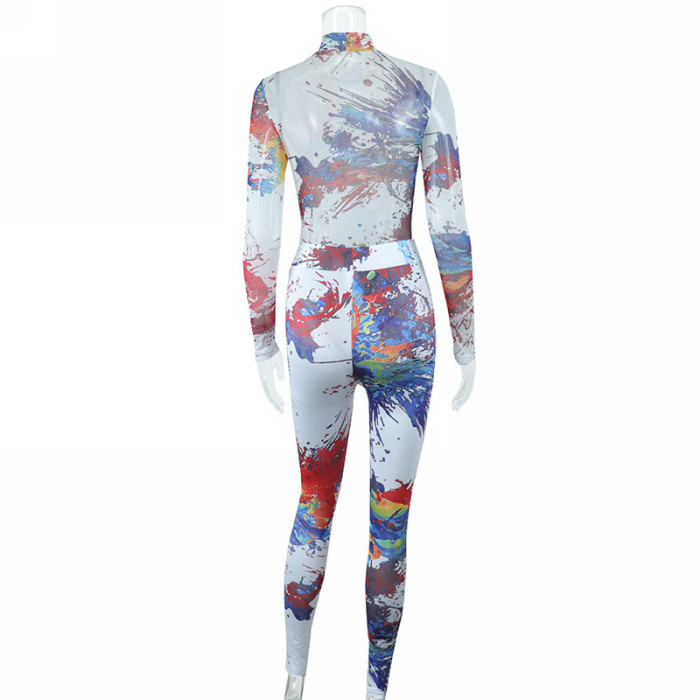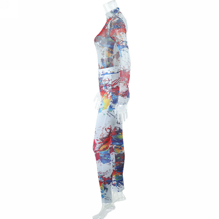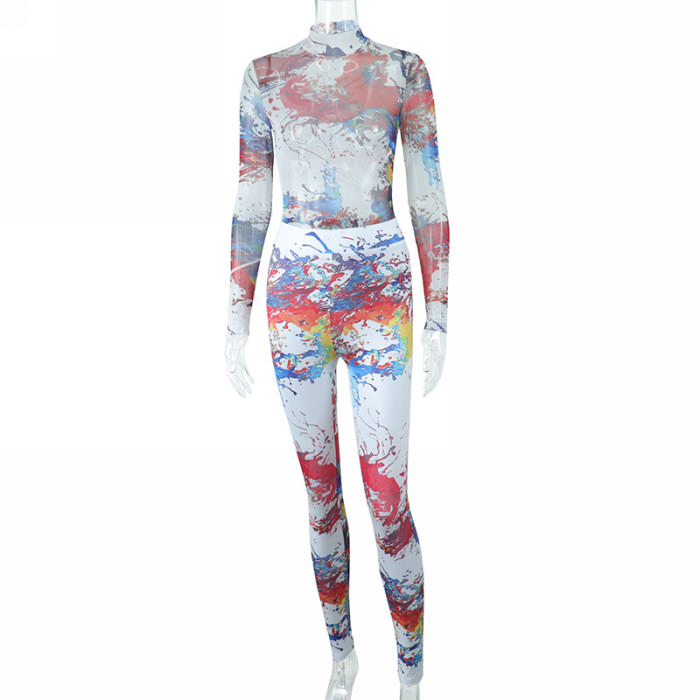 (Real Image)2022 Styles Women Sexy INS Styles Print Mesh Two Piece SuitSKU: #CF67049-1