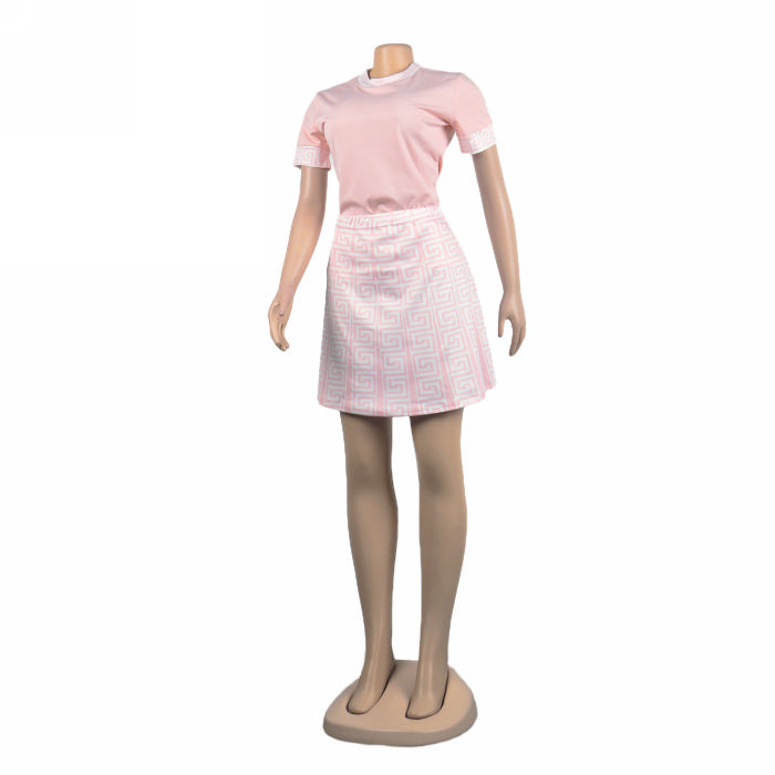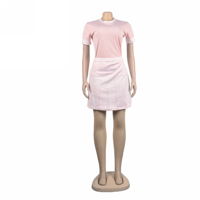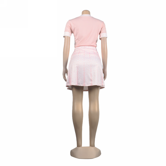 (Real Image)2022 Styles Women Sexy INS Styles Print Short Sleeve Tee+Mini Skirts 2 Piece Suit DressSKU: #XF27227-1