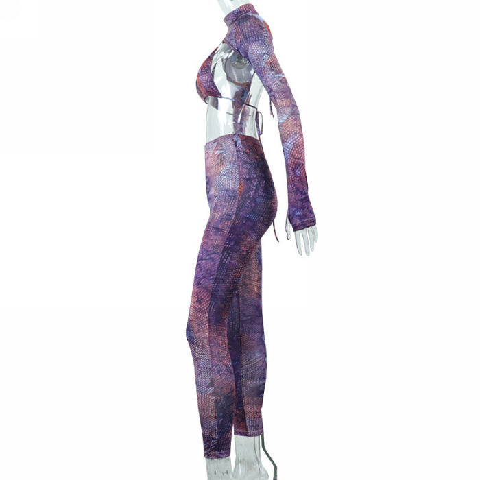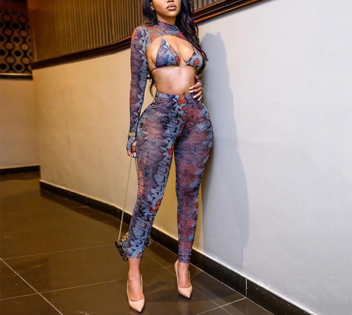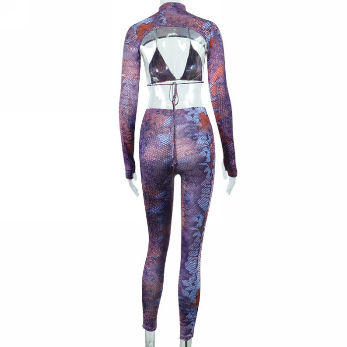 (Real Image)2022 Styles Women Sexy INS Styles Print Snake Three Piece SuitSKU: #CF67035-1