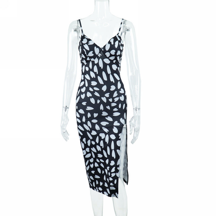 (Real Image)2022 Styles Women Sexy INS Styles Print Strap Side Split Mini DressSKU: #CF67054-2