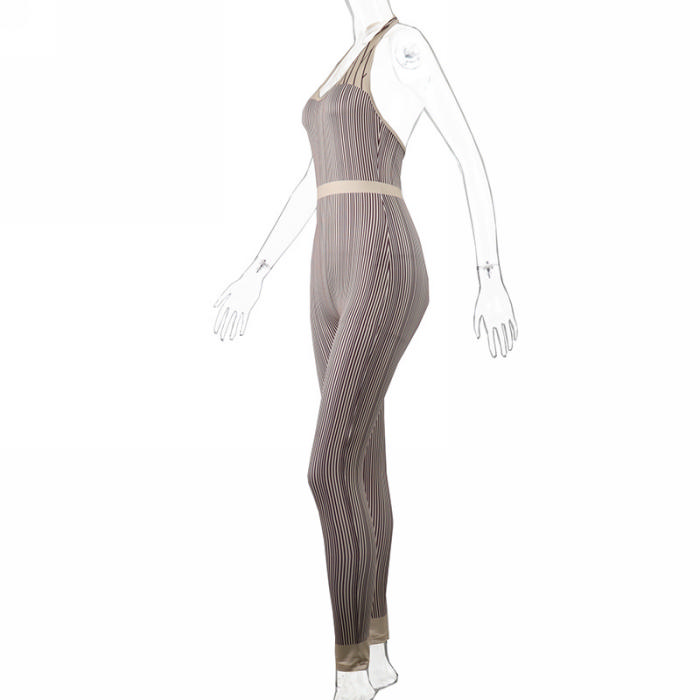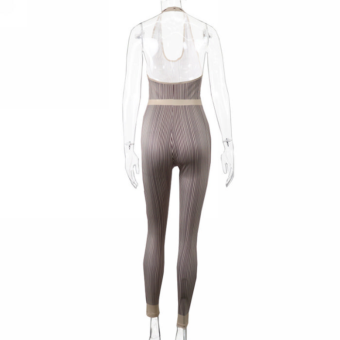 (Real Image)2022 Styles Women Sexy INS Styles Print Striped Halter Backless JumpsuitSKU: #CF67037-2