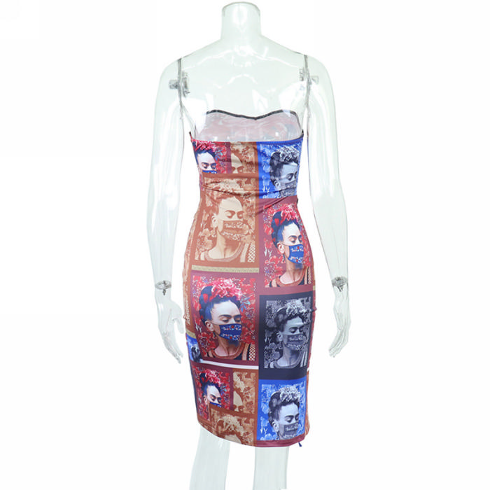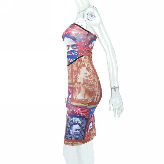 (Real Image)2022 Styles Women Sexy INS Styles Print Tube Side Split Mini DressSKU: #CF67053-1