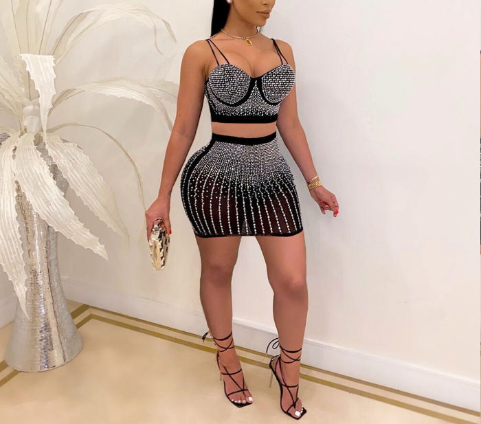(Real Image)2022 Styles Women Sexy INS Styles Sequin Mini Dress Two Piece SuitSKU: #XF27203-1