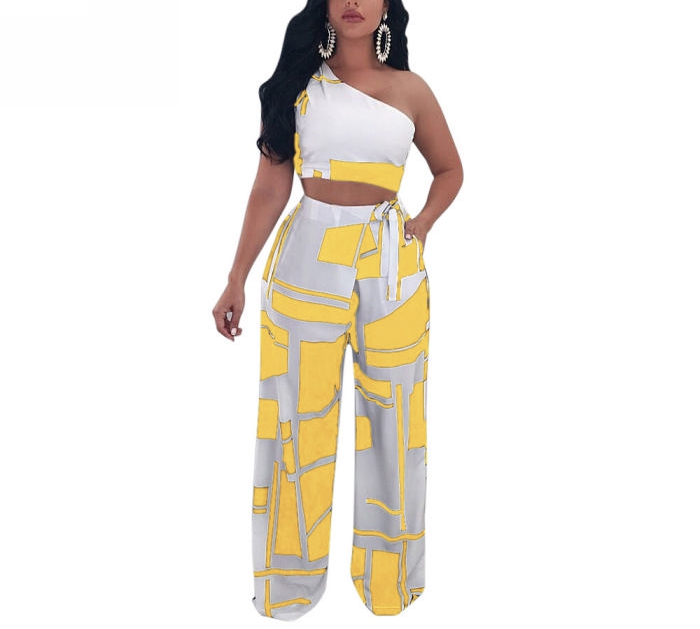 (Real Image)2022 Styles Women Sexy INS Styles Single Shoulder Print Two Piece SuitSKU: #XF27222-1