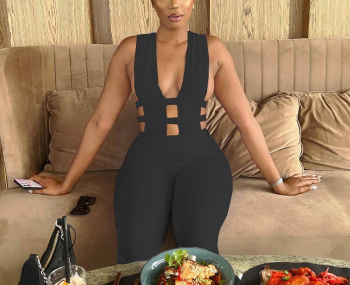 (Real Image)2022 Styles Women Sexy INS Styles Solid Color Cut Out JumpsuitSKU: #CF67074-2