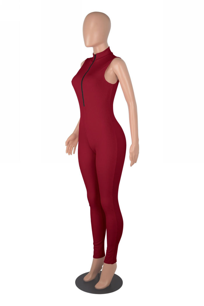 (Real Image)2022 Styles Women Sexy INS Styles Solid Color Front Zipper JumpsuitSKU: #XF02163-7