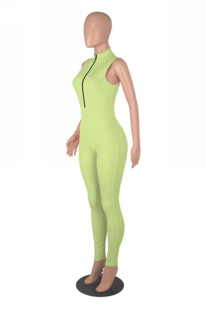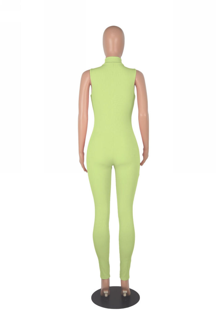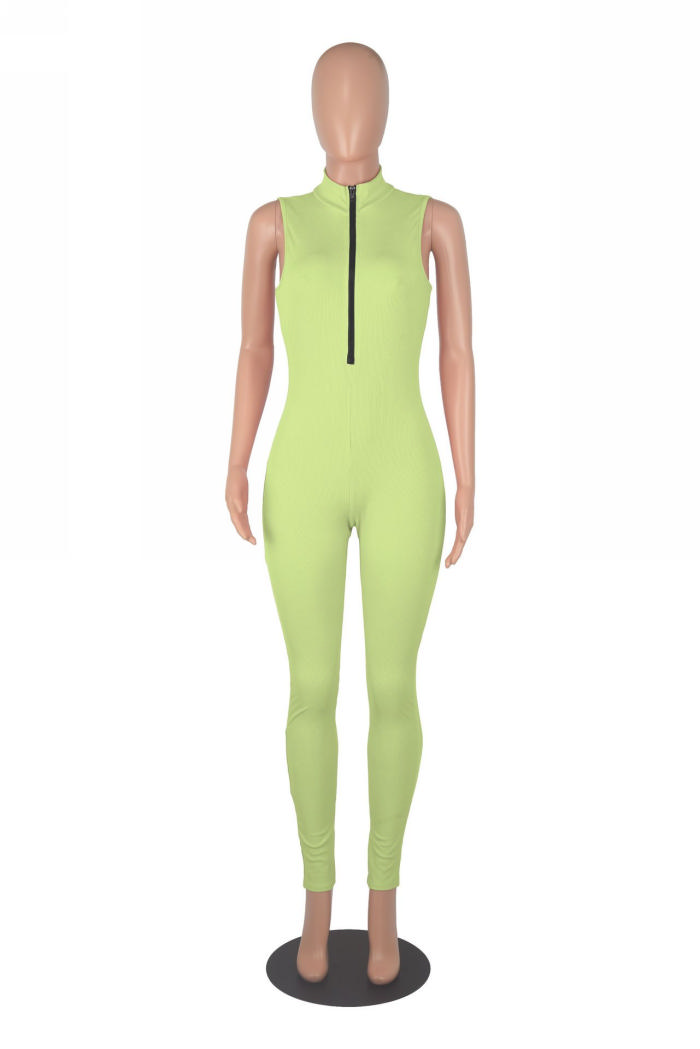 (Real Image)2022 Styles Women Sexy INS Styles Solid Color Front Zipper JumpsuitSKU: #XF02163-6