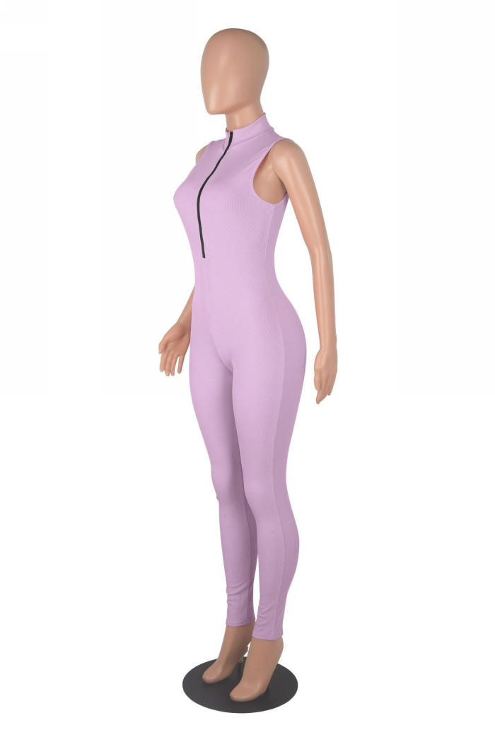(Real Image)2022 Styles Women Sexy INS Styles Solid Color Front Zipper JumpsuitSKU: #XF02163-5