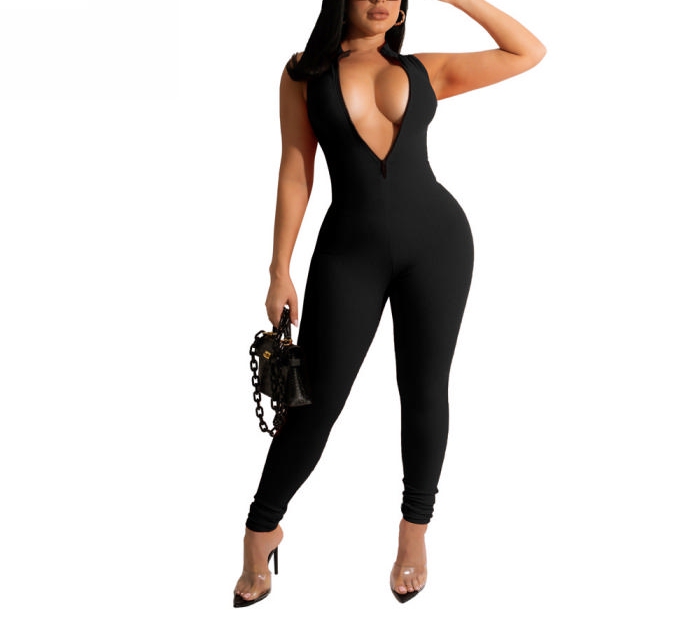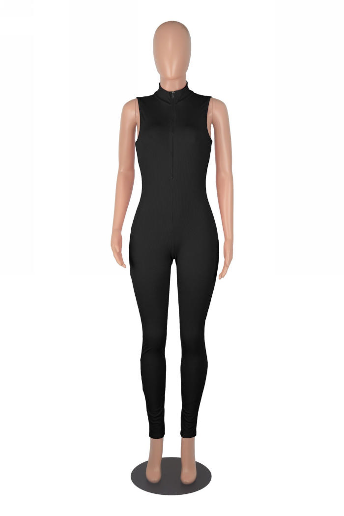 (Real Image)2022 Styles Women Sexy INS Styles Solid Color Front Zipper JumpsuitSKU: #XF02163-3