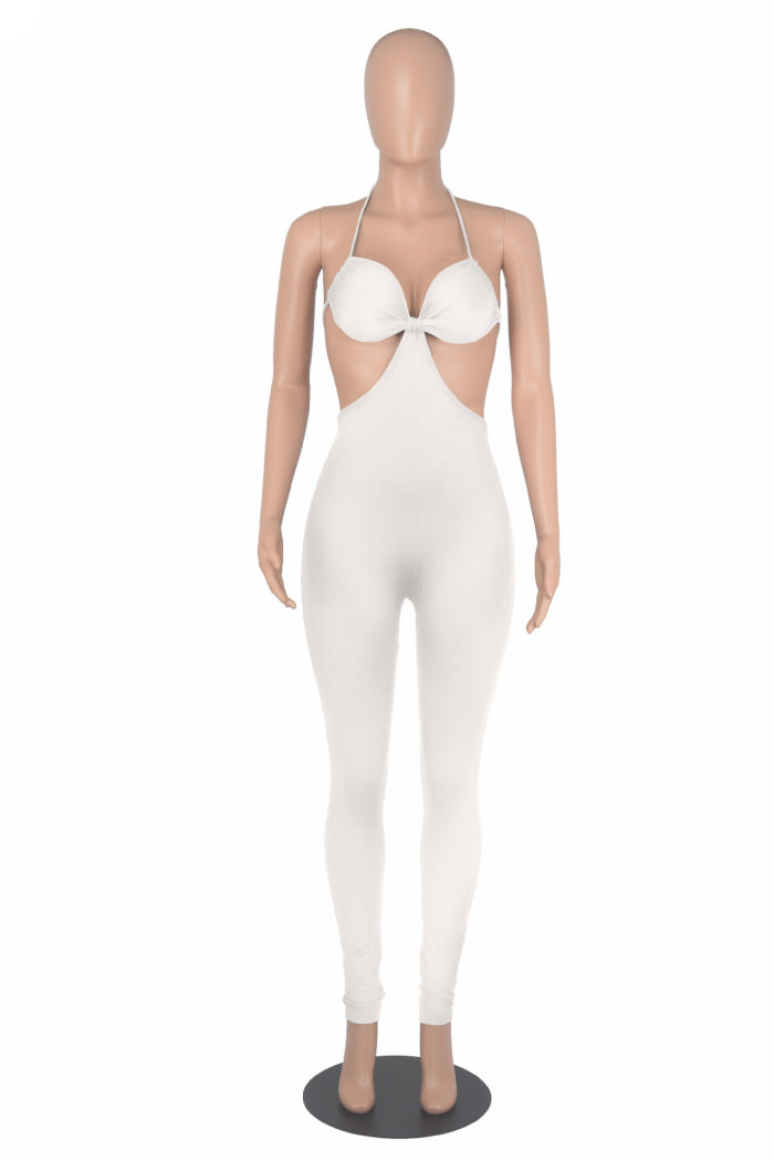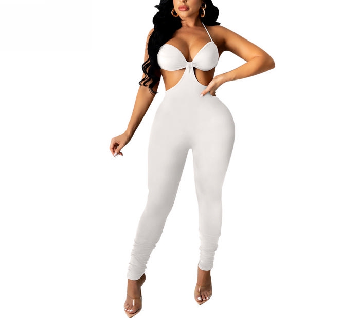 (Real Image)2022 Styles Women Sexy INS Styles Solid Color Halter Backless JumpsuitSKU: #CF24062-1