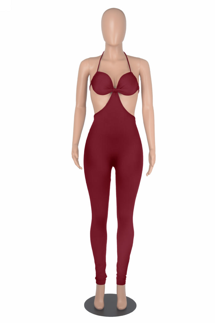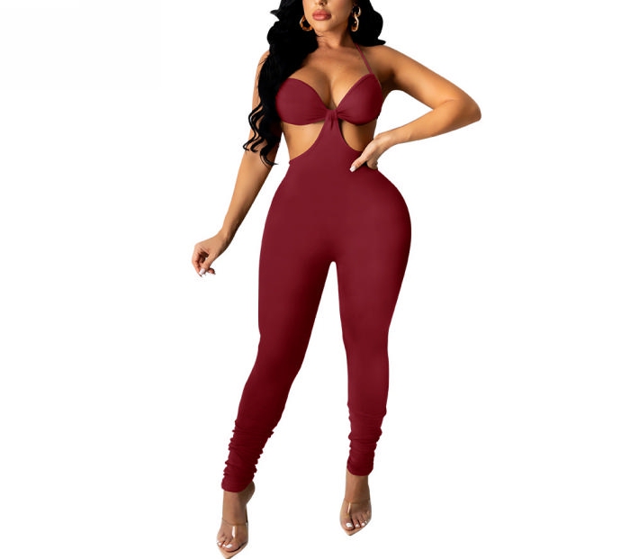 (Real Image)2022 Styles Women Sexy INS Styles Solid Color Halter Backless JumpsuitSKU: #CF24062-4
