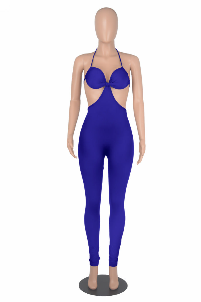 (Real Image)2022 Styles Women Sexy INS Styles Solid Color Halter Backless JumpsuitSKU: #CF24062-3