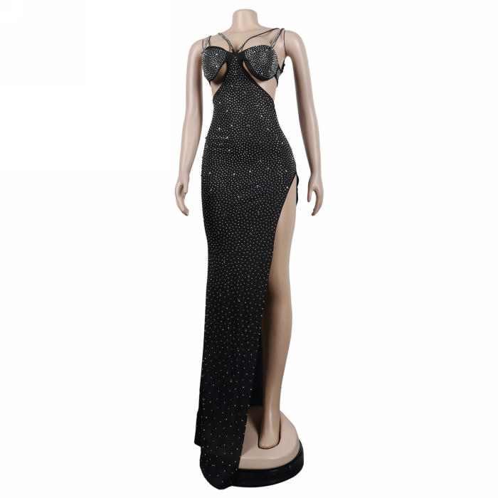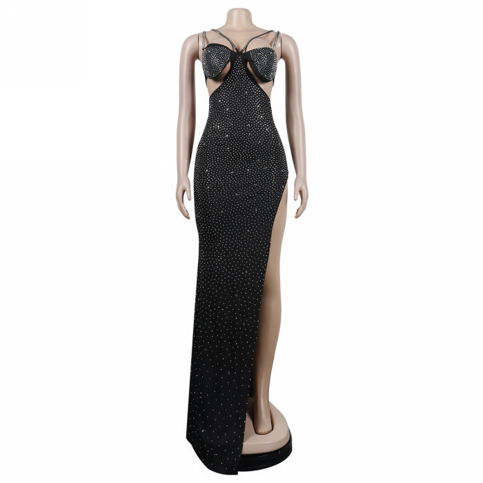(Real Image)2022 Styles Women Sexy INS Styles Strap Cut Out Sequin Maxi DressSKU: #XF27205-1