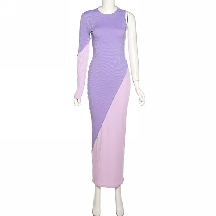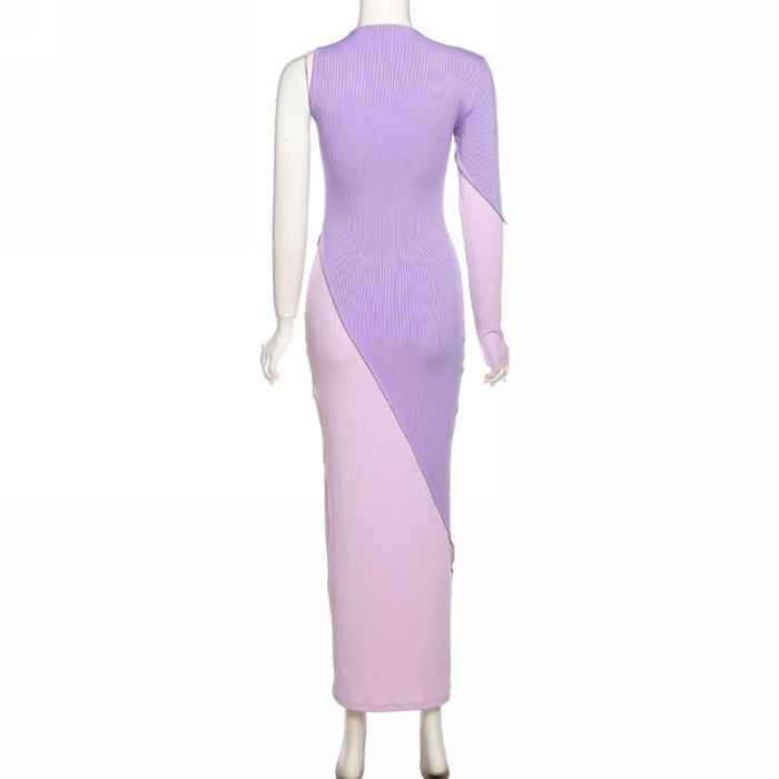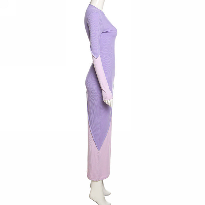 (Real Image)2022 Styles Women Sexy Spring INS Styles Contrast Color Single Long Sleeve Maxi DressSKU: #CF48523-1