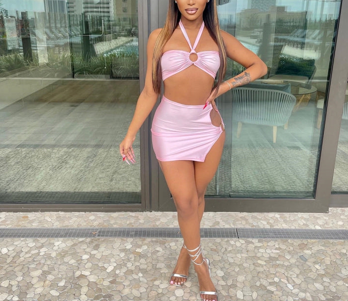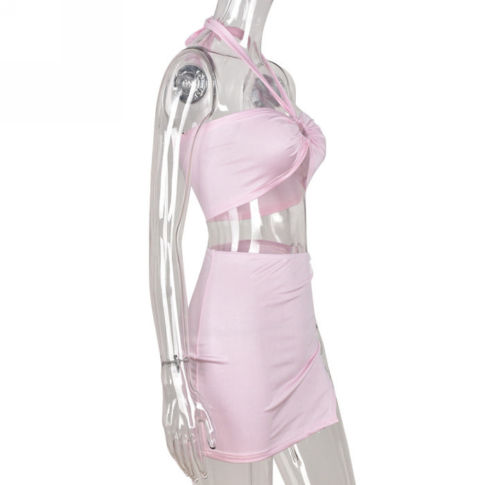 (Real Image)2022 Styles Women Sexy Spring INS Styles Halter Two Pieces DressSKU: #CF59006-1