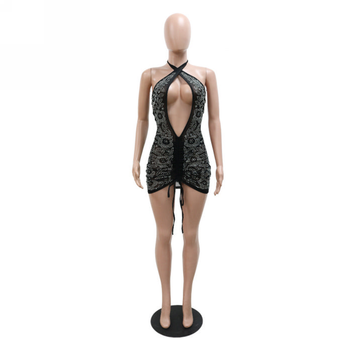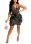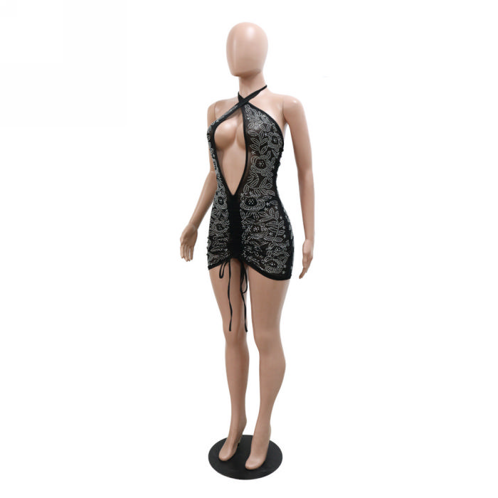 (Real Image)2022 Styles Women Sexy Spring INS Styles Mesh Sequins Mini DressSKU: #OEM5113-1