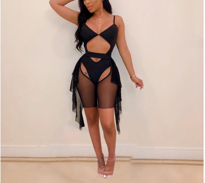 (Real Image)2022 Styles Women Sexy Spring INS Styles Mesh Short Two Pieces SetSKU: #OEM5351-1