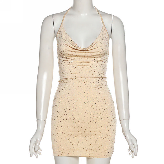 (Real Image)2022 Styles Women Sexy Spring INS Styles Sequin Halter Club DressSKU: #CF48533-1