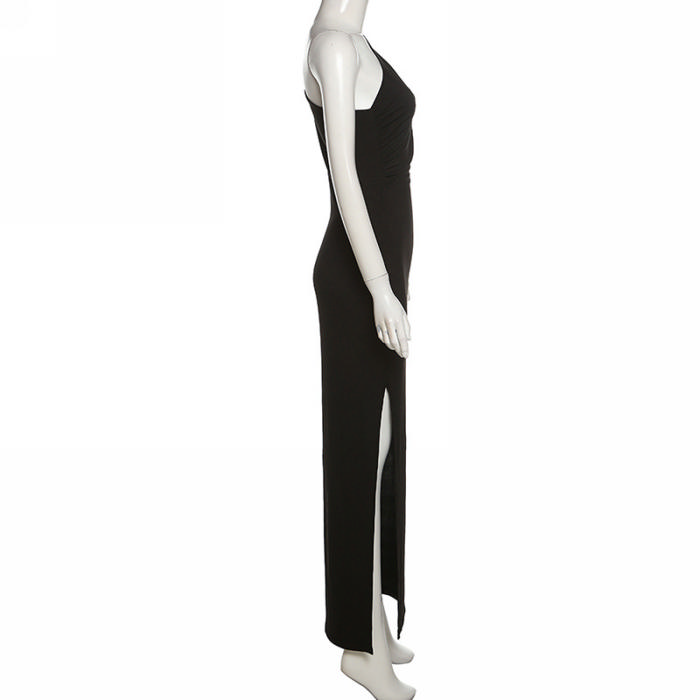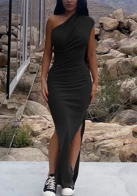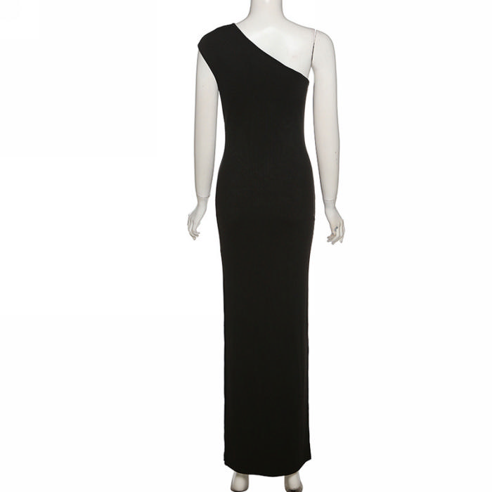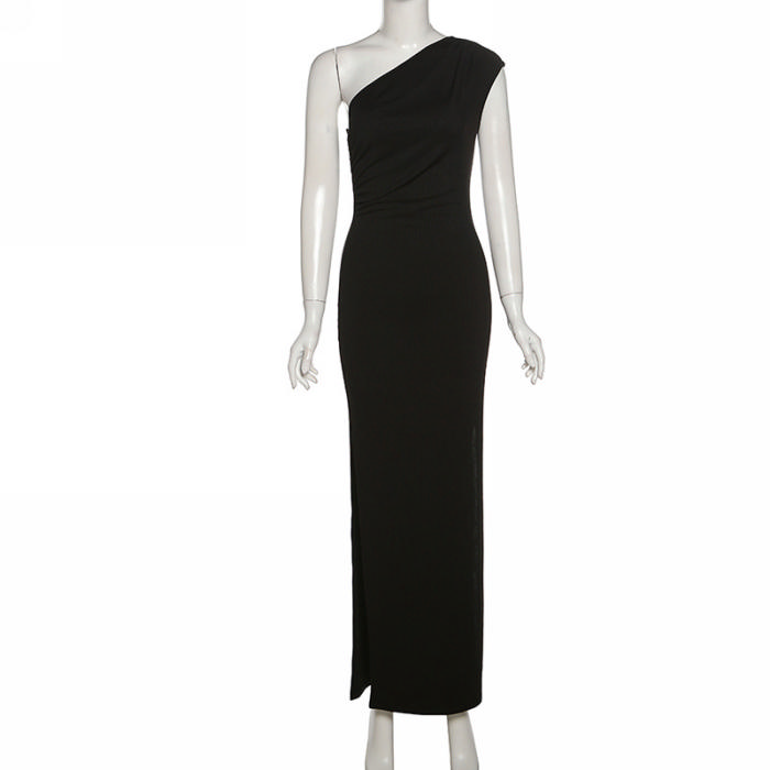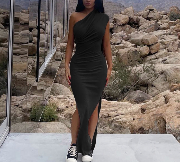 (Real Image)2022 Styles Women Sexy Spring INS Styles Single Shoulder Double Split Maxi DressSKU: #CF48537-3