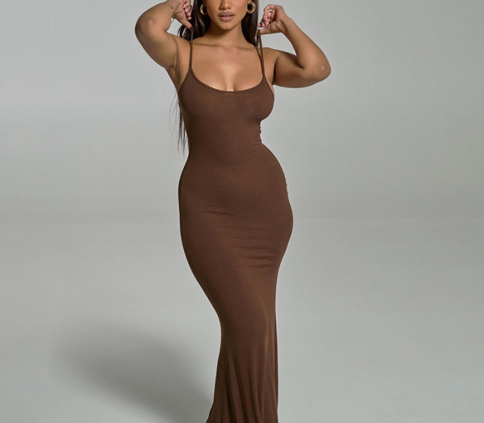(Real Image)2022 Styles Women Sexy Spring INS Styles Strap Solid Color Classic Maxi DressSKU: #CF48545-1