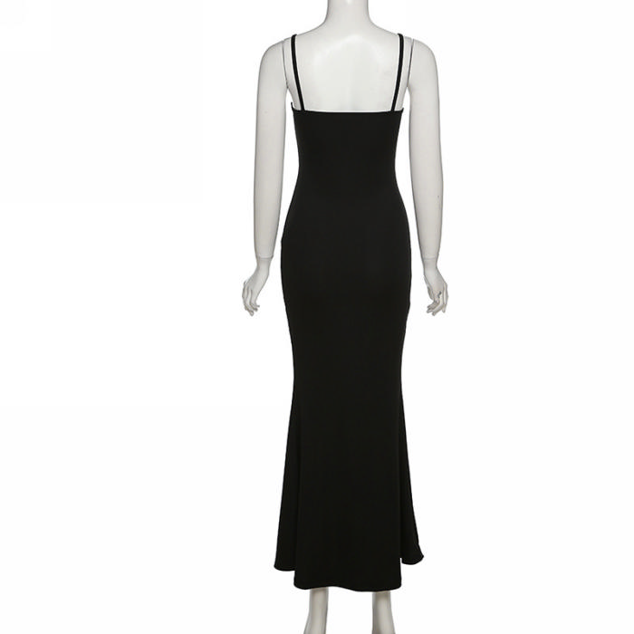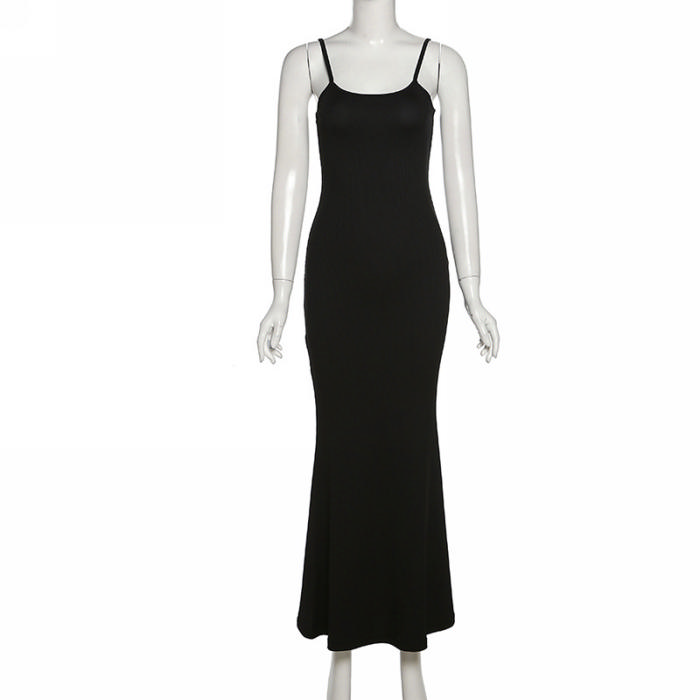 (Real Image)2022 Styles Women Sexy Spring INS Styles Strap Solid Color Classic Maxi DressSKU: #CF48545-2
