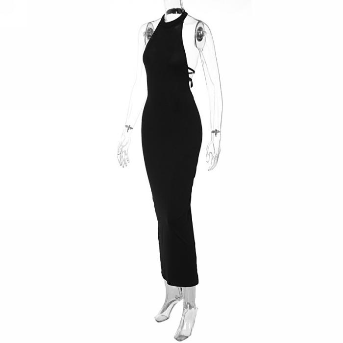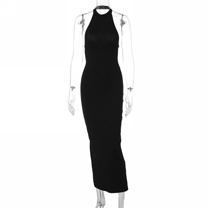 (Real Image)2022 Styles Women Sexy Spring&Winter TikTok&Instagram Styles Backless Halter Maxi DressSKU: #CF81001-1