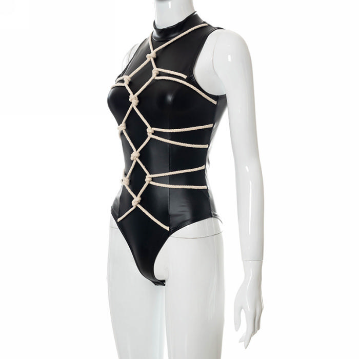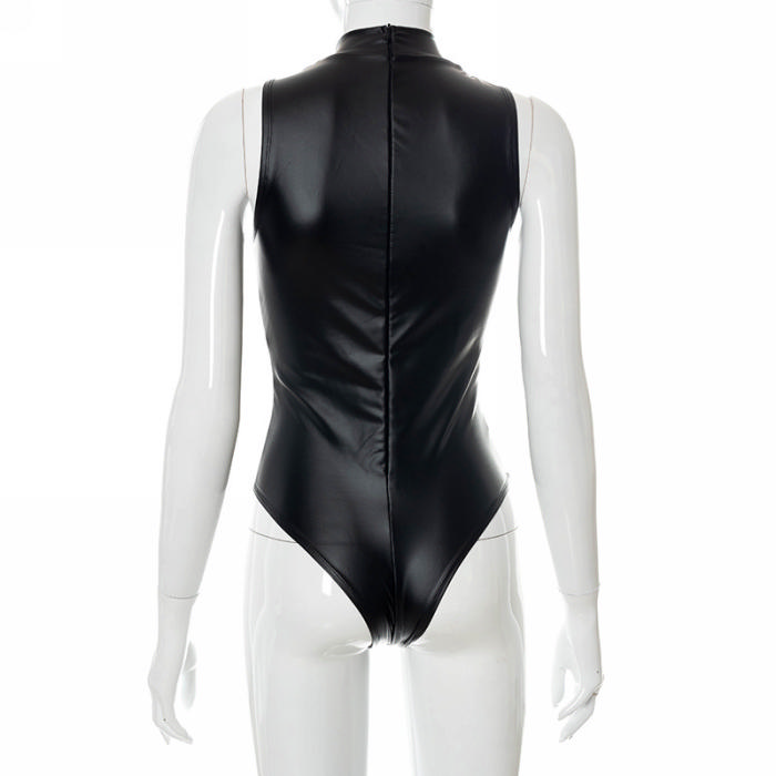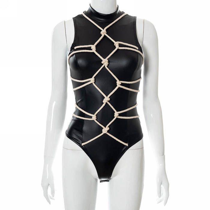 (Real Image)2022 Styles Women Sexy Spring&Winter TikTok&Instagram Styles Bandage PU BodysuitSKU: #CF80001-1