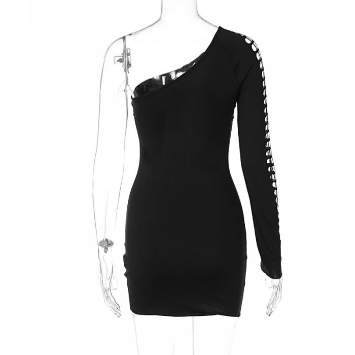 (Real Image)2022 Styles Women Sexy Spring&Winter TikTok&Instagram Styles Black Cut Out Single Long Sleeve Mini DressSKU: #OM0342-1