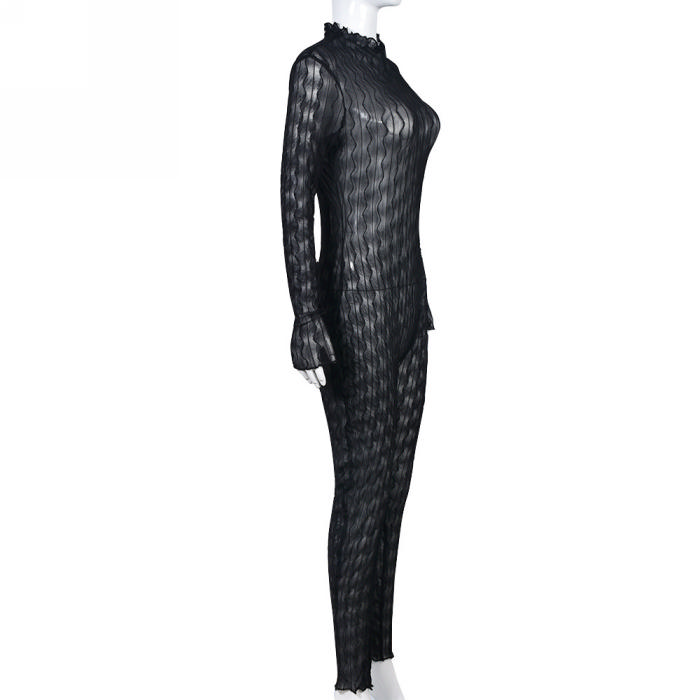 (Real Image)2022 Styles Women Sexy Spring&Winter TikTok&Instagram Styles Black Lace JumpsuitSKU: #CF75015-1