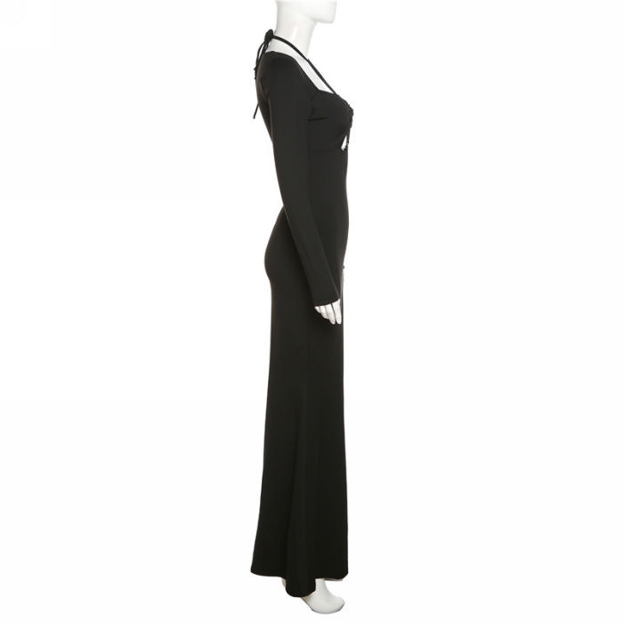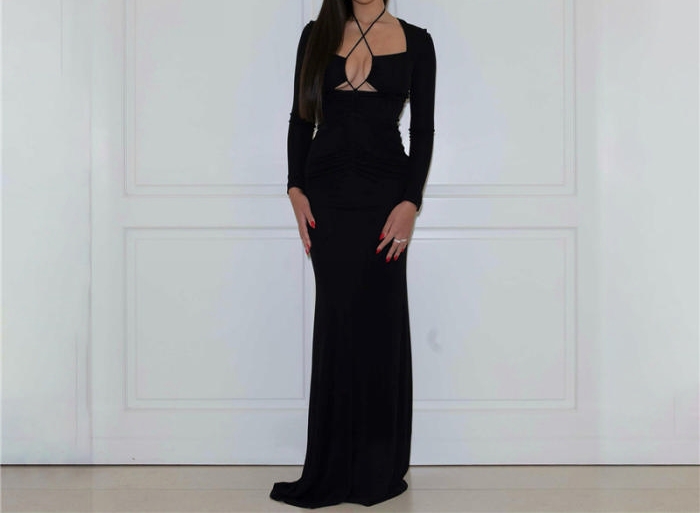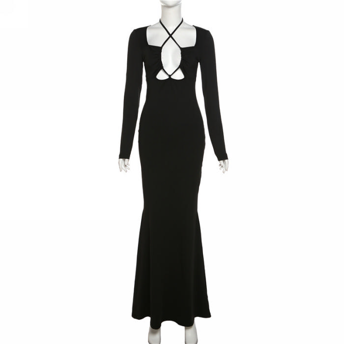 (Real Image)2022 Styles Women Sexy Spring&Winter TikTok&Instagram Styles Black Long Sleeve Maxi DressSKU: #CF48949-1
