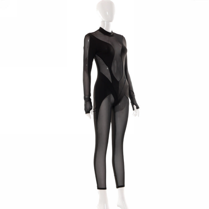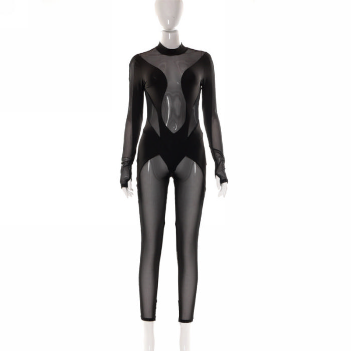 (Real Image)2022 Styles Women Sexy Spring&Winter TikTok&Instagram Styles Black Mesh JumpsuitSKU: #CF47419-1