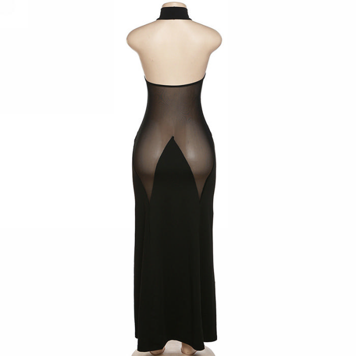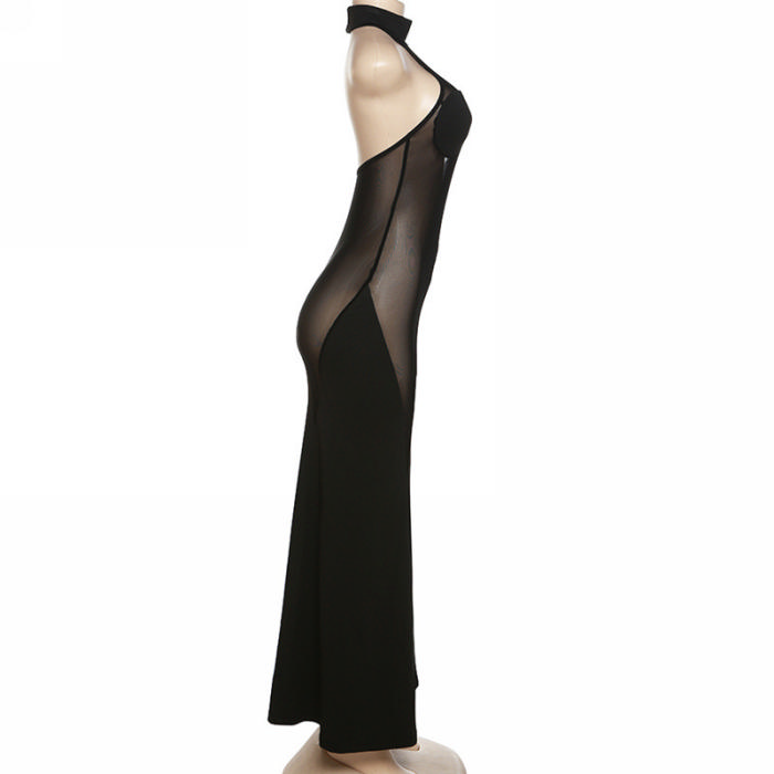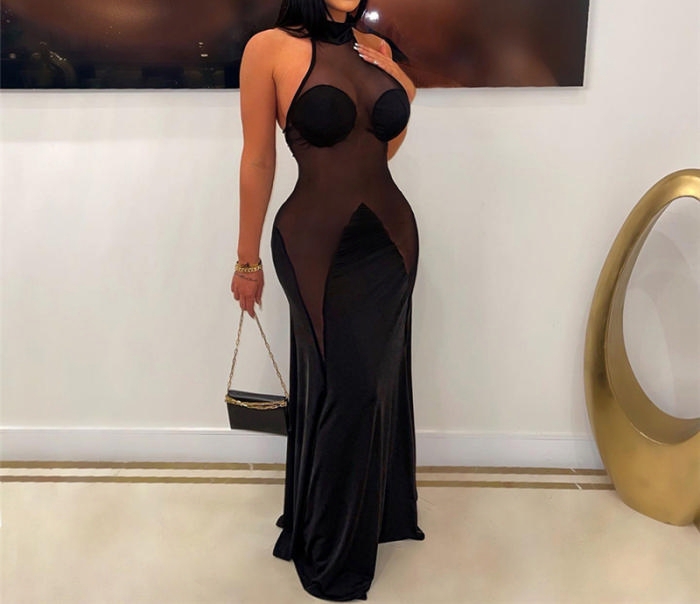(Real Image)2022 Styles Women Sexy Spring&Winter TikTok&Instagram Styles Black Mesh Maxi DressSKU: #CF48945-1