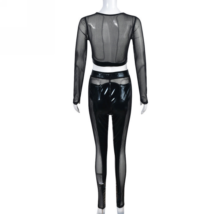 (Real Image)2022 Styles Women Sexy Spring&Winter TikTok&Instagram Styles Black Mesh Two Piece SuitSKU: #CF59394-1