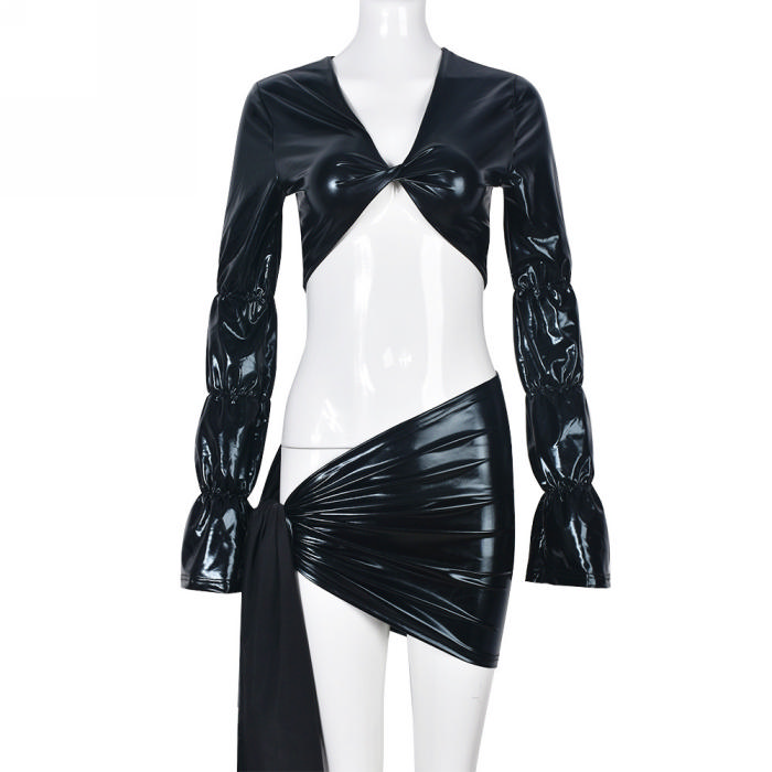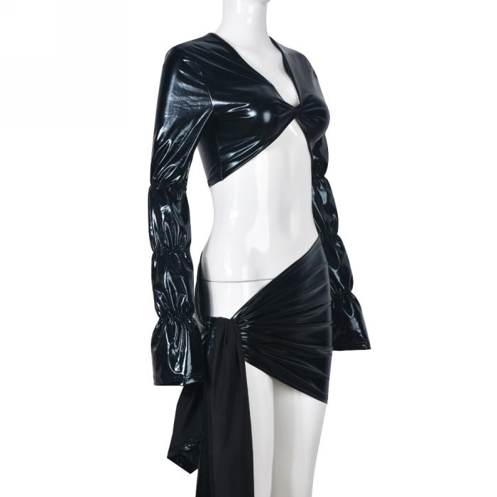(Real Image)2022 Styles Women Sexy Spring&Winter TikTok&Instagram Styles Black Two Piece DressSKU: #CF59378-1